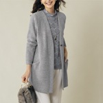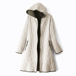 大人かわいい星型キルトが素敵♪トリミングの配色使いがアクセントになっています。厚みをおさえた、軽くて暖かいフード付きコートです。