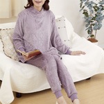 毛布のように「ふわっ」とあたたか。表はケーブル柄、裏はボアフリースで両面ぬくぬくのパジャマ。袖口やパンツの裾がリブ仕様だからしっかり冷気を防いでくれますよ♪
