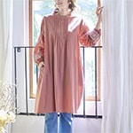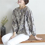 着るだけで気分がほどける、ナチュラルなブラウス。バルーン袖のやさしいふくらみと、ボタニカル柄がほんのりフェミニン。後ろ下がりのデザインはヒップラインを自然にカバーします。