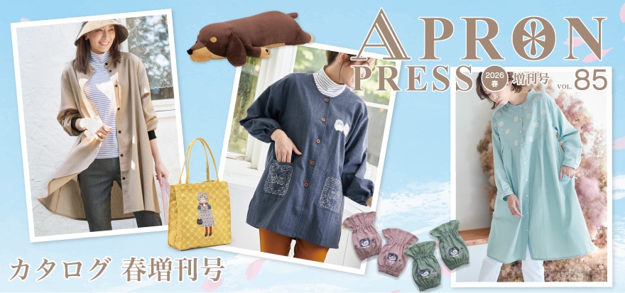 旬のデザインを取り入れたワンランク上のかっぽう着。ドロップスリーブがふわっとフェミニン!水をはじき汚れも付きにくい撥水加工生地を使用しています。気兼ねなく着られるのが良いですよね♪